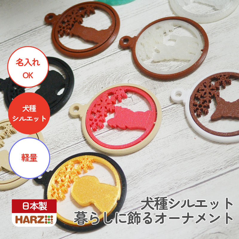 名入れできる 犬シルエット オーナメントチャーム(冬デザイン)