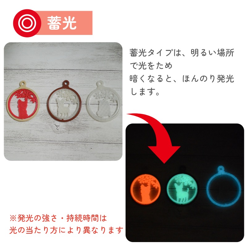 暗くなると、蓄光カラー部分が