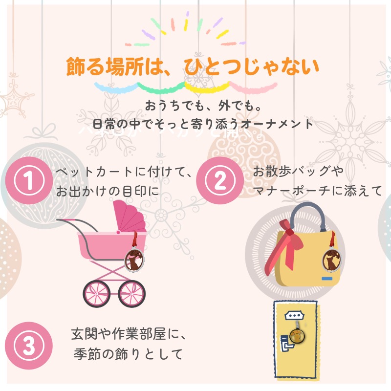 お散歩バッグやペットカートに付けたり、
